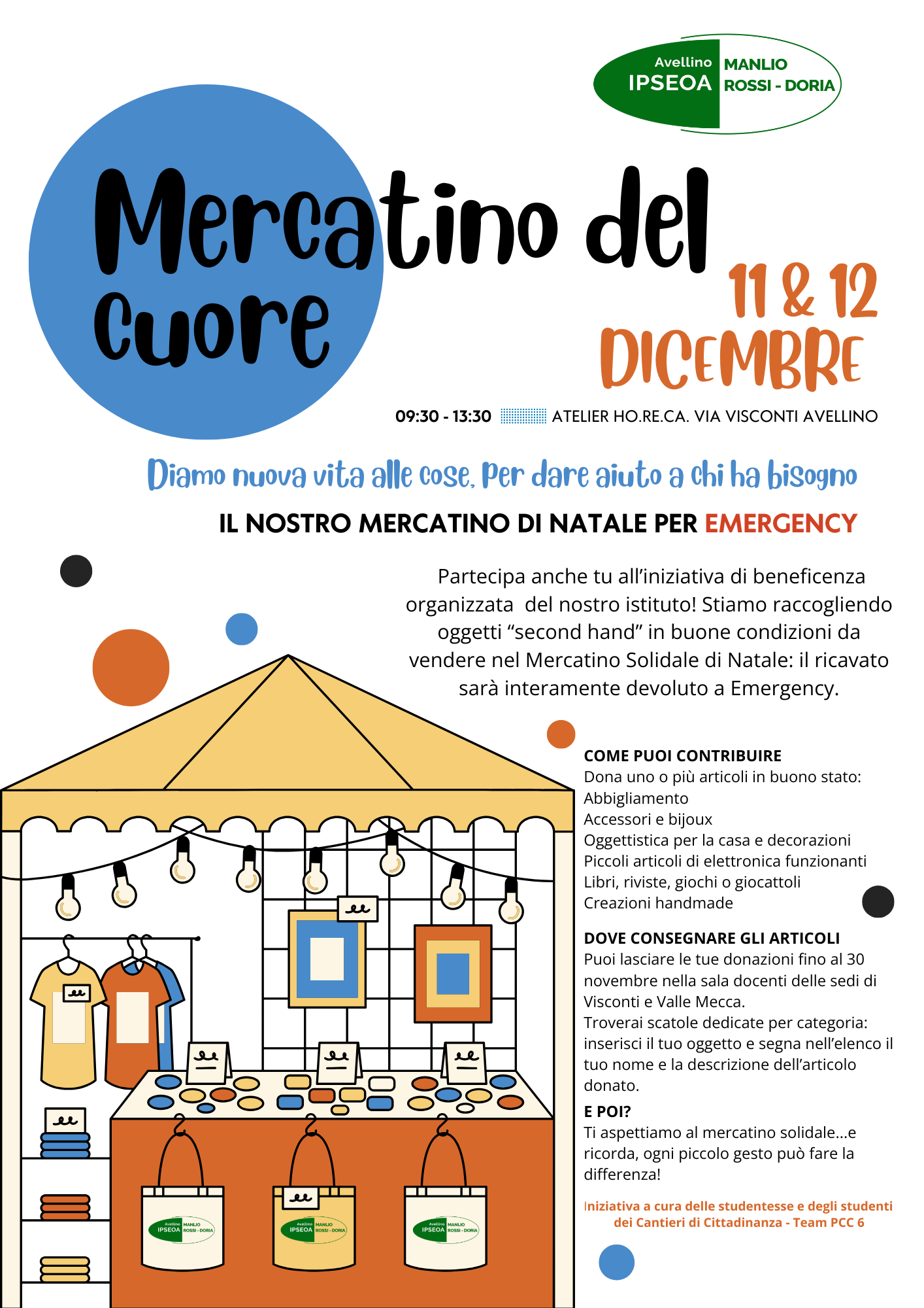 È ufficialmente partita l’iniziativa solidale “Mercatino del Cuore”, il progetto promosso dalle studentesse e dagli studenti dei Cantieri di Cittadinanza dell’IPSEOA Manlio Rossi-Doria con l’obiettivo di sostenere Emergency attraverso la realizzazione di un Mercatino Solidale di Natale.